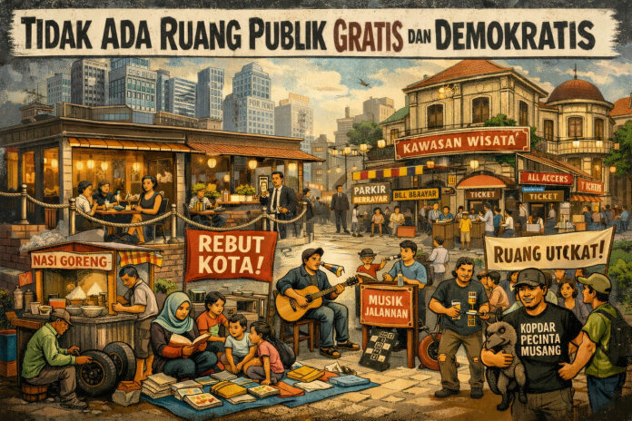 Sebagian orang mungkin menggerutu karena pemandangan tak indah karena menemui banyak gerobak cilok atau kopi keliling di pinggir jalan. Namun percayalah, mereka sedang melakukan gerakan merebut kembali hak atas kota agar tidak terjajah oleh arus modal kapitalisme. Berbagai komunitas masyarakat juga perlu mewarnai ruang kota dengan pertemuan-pertemuan sporadis. Lapak baca gratis, festival musik jalanan, atau sekedar kopdar pecinta musang adalah jalan untuk membuka ruang publik yang demokratis.